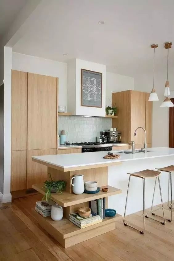 1.廚房空間嵌入式壁龕,能夠?qū)⒁恍┱{(diào)料等工具放置在里面,位置設(shè)計(jì)的合理的話還方便拿放,帶面板的設(shè)計(jì)既能隔絕廚房油煙,還能保障臺面整潔。