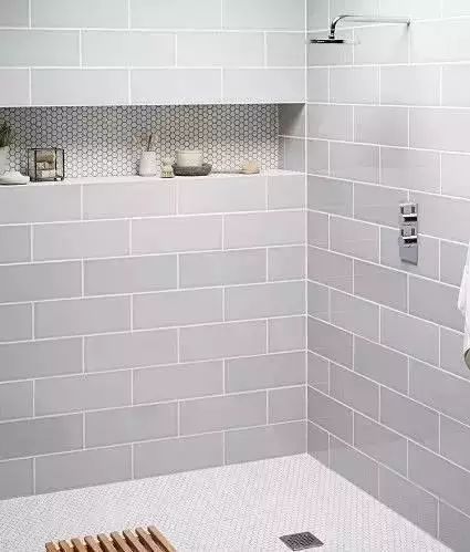 15.浴室也弄嵌入式壁龕,反正在一面墻上做文章,墻面磚塊的對比處理,更時(shí)尚美觀。
